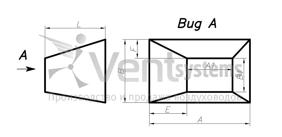 Прямоугольные воздуховоды Фасонные изделия Переход прямоугольное сечение на прямоугольное сечение (с нестандартным смещением, тип 6)